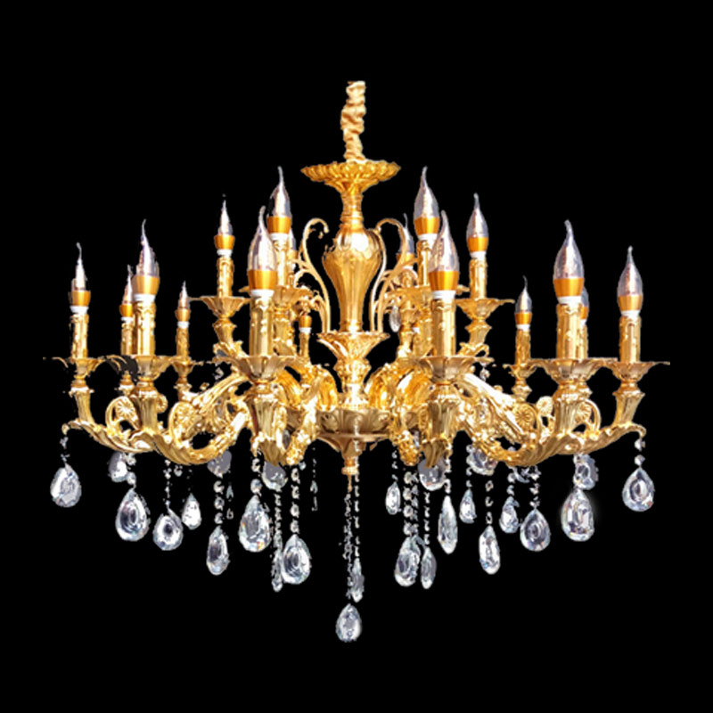 Stilfrage: Dieser opulente Kronleuchter mit goldener Lackierung und funkelnden Kristallen passt perfekt zu klassischen, royalen oder modernen Luxus-Einrichtungen. Er verleiht jedem Raum eine aristokratische Eleganz.